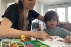 スペイン・マドリードの自宅で、母親と一緒に海の生き物の名前を覚えながら色を塗る4歳のルベンくん。(2020年4月3日撮影) ※本文との直接の関係はありません |