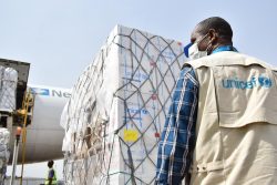 ユニセフ(国連児童基金)が輸送した重要な医療物資が16日、ナイジェリアに到着しました。新型コロナウイルス(COVID-19)のパンデミックと闘うためのもので、マースク社のターミナル部門・APMターミナルズから資金提供を受けた航空機で届けられました。