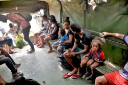 パナマへの入国が許されず、トラックで強制送還されるキューバ人家族とラテンアメリカから来た移民の人たち。(コロンビア) |