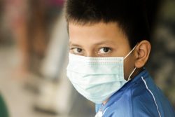COVID-19感染防止のためマスクを着用する男の子。(エルサルバドル) |