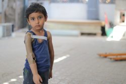 紛争が激化したアデンで、一年前に片腕を失った3歳のライアンちゃん。 (2020年2月6日撮影) |