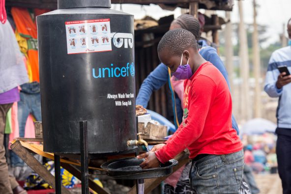 こうした子どもたちを感染から守るため、ユニセフ・ケニア事務所は、自治体や政府と協力して、誰もが使える手洗い場を、スラム内など1,000カ所以上に設置しました。