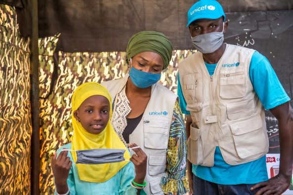 ユニセフは、こうした子どもたちが、自分自身や周囲の人をウイルスから守る正しい知識を身につけられるよう、啓発キャンペーンを実施するとともに、石鹸やマスクを配布することで感染予防対策がとれるように支援しています。