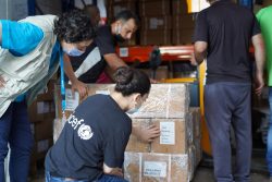 被害を受けた港の倉庫に保管されていたワクチンを運び出すユニセフのスタッフ。(2020年8月6日撮影) |