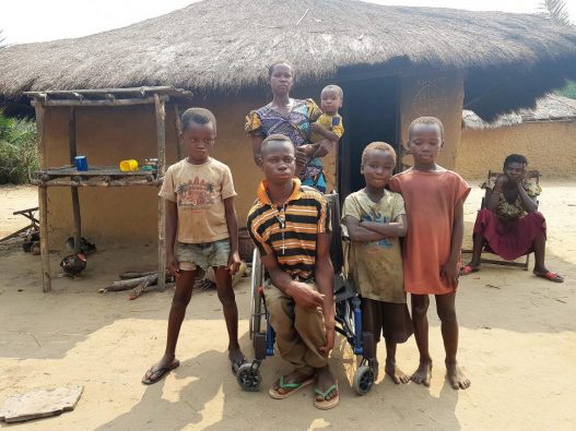 コンゴ民主共和国のジョセフさんは、7歳の時に感染したポリオによって体に麻痺が残り、車いすで生活をしています。