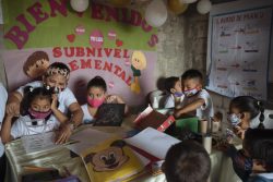 オンライン学習に参加できない子どもたちのために開かれた学習キャンプの様子。(エクアドル、2020年8月撮影) |