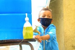 アディスアベバの保健センターに入る前に、石けんを使って手を洗う4歳のネイサンちゃん。(エチオピア、2020年5月撮影) |