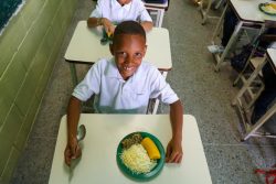 ミランダ州の学校で給食を食べる男の子。(ベネズエラ、2019年9月撮影) |