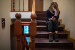 母親が仕事を失った後、義父からの嫌がらせを受け家庭環境が悪くなったため、家出をした15歳のバリアさん。ユニセフがサポートするヘルプラインに電話をし、助けを求めた。(ウクライナ、2020年11月撮影) |