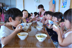 | また、より多くの幼稚園や保育所が一日でもその活動を再開できるよう、必要な物資を、それこそ子ども用スプーンセットの様な小物から提供し、最終的にはプレハブの仮設園舎の建設まで行いました(日本ユニセフ協会注:宮城県内では、地元の方々のご要望を受け、プレハブの建物ではなく、恒久的に使用できる建物の建設支援を行いました)。