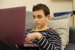 パソコンを使って宿題をするエレバンくん。(アルメニア、2020年12月撮影) |