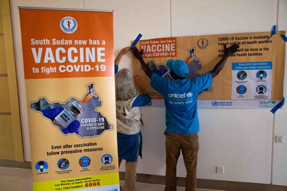 2021年4月6日、新型コロナワクチンの予防接種を行う首都ジュバの病院で、ユニセフのスタッフが、着々と準備を進めています。