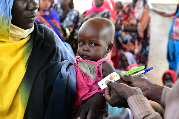 中央部Bardangazにある保健センターで、上腕計測メジャーを使って栄養状態の検査を受ける子ども。(チャド、2021年5月撮影)