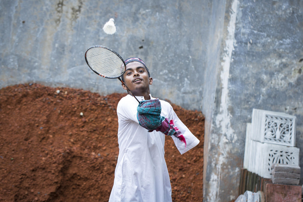 生まれつき両腕がないオマールくん(15歳)は、貧困家庭に生まれ、母親と3人で暮らしている。ユニセフの支援で、職業訓練を受けている。(バングラデシュ、2021年10月27日撮影)