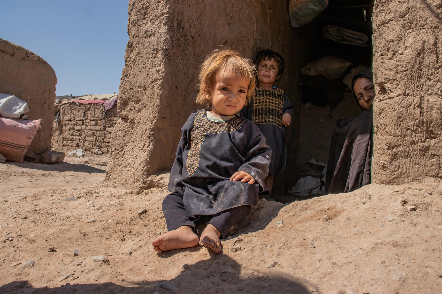 アフガニスタンのヘラート市にある国内避難民の非公式居住区に滞在する子ども。(2021年8月29日撮影)