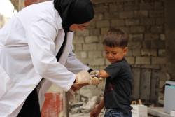 子どもたちへのポリオ予防接種キャンペーンでは、地域コミュニティへの啓発を通じて協力を得ることが欠かせません。今回のキャンペーンでは、訪問した家庭の大半が子どもへの予防接種を希望しました。ホベイシュ医師は、「人々は協力的で、子どもに予防接種を受けさせることの重要性を理解しています。予防接種で予防できる病気によって、自分の子どもに障がいが残ったり命を落とすことを望む親などいないのです」と話します。
