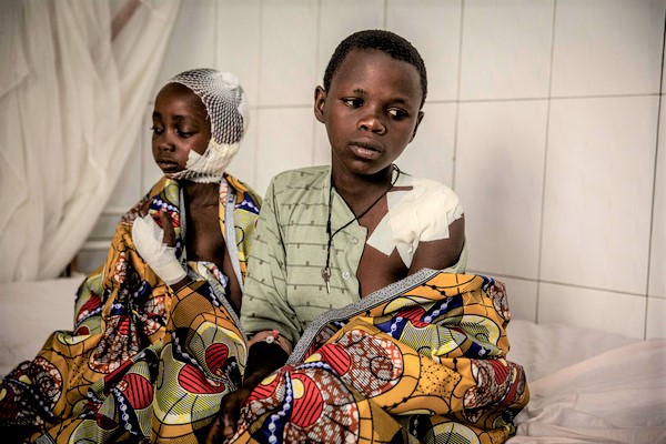 暴力行為によって傷を負った7歳のロシンヌさんと13歳のセシルさん。(コンゴ民主共和国、2022年2月撮影)