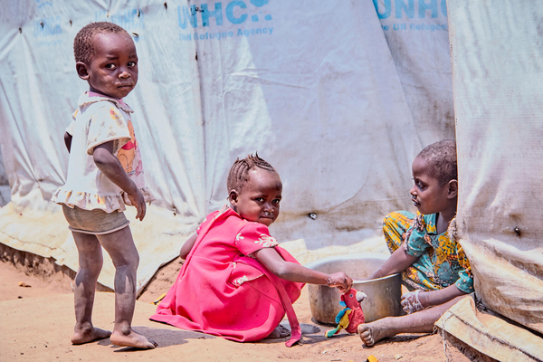 イトゥリ州にある国内避難民キャンプで遊ぶ子どもたち。(コンゴ民主共和国、2022年2月撮影)