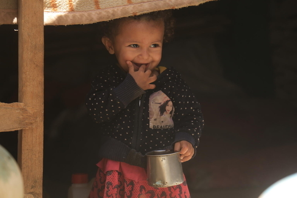 マリブにある国内避難民キャンプで生まれた生後16カ月のゴーンちゃん。彼女の家族は紛争の激化によって5年前に故郷を追われた。(イエメン、2022年3月17日撮影)※本文との直接の関係はありません