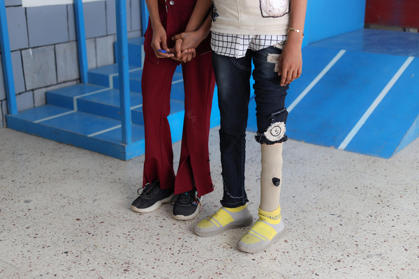 義足を試着する女の子。突然爆撃を受け片足を失った。(イエメン、2021年10月撮影)※本文との直接の関係はありません