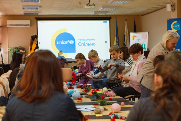 子どもや若者向けの図画工作教室の様子。子どもたちのメンタルヘルスは特に懸念されており、ユニセフはパートナーとともに支援を行っている。(ウクライナ、4月4日撮影)