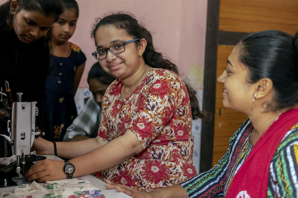 COVID-19の影響により学校に行けなくなったため、職業訓練の受講登録をした17歳のナガルさん。自分のお店を持つため、デザインの勉強を頑張っている。(インド、2022年6月4日撮影)
