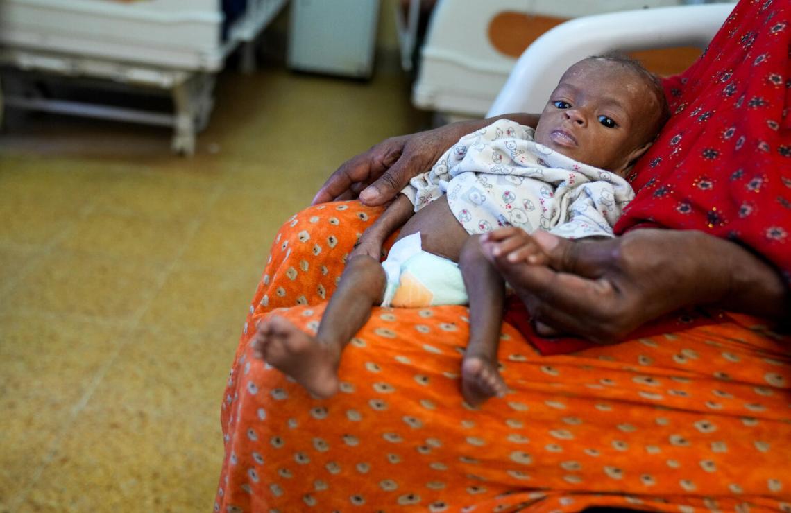 イブラハムの世話をしている女性はおばあさんです。 母親は母乳を与えることができず、家で他の子どもの世話をしているそうです。おばあさんのひざに横たわるイブラヒムを、私は直視することができませんでした。