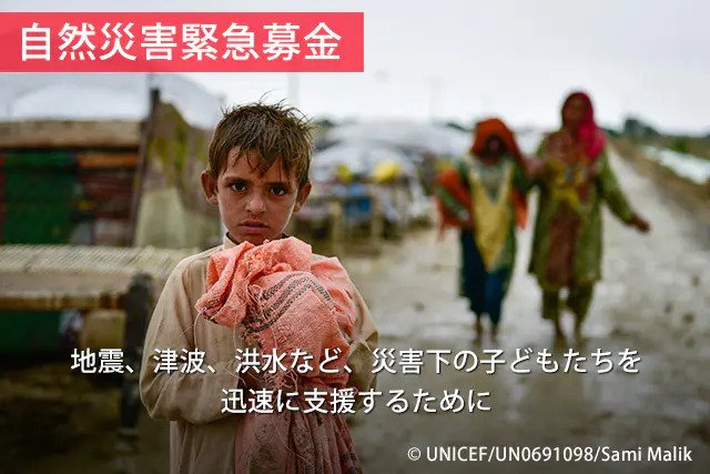 その活動を支えるため、日本ユニセフ協会は、ユニセフ「自然災害緊急募金」を受け付けております。