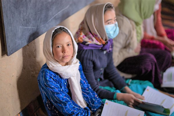 教室の後ろで算数の授業を受ける10歳のフレシュタさん。(アフガニスタン、2022年6月撮影)