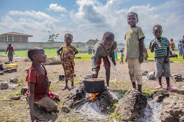 東部北キブ州の戦闘激化により、ルチュル地域のキワンジャに逃れた子どもたち。(コンゴ民主共和国、2022年6月撮影)