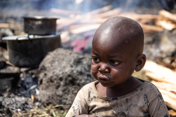 東部北キブ州の戦闘激化により、ゴマの国内避難民キャンプに逃れてきた4歳のジャスティンちゃん。(コンゴ民主共和国、2022年5月撮影)