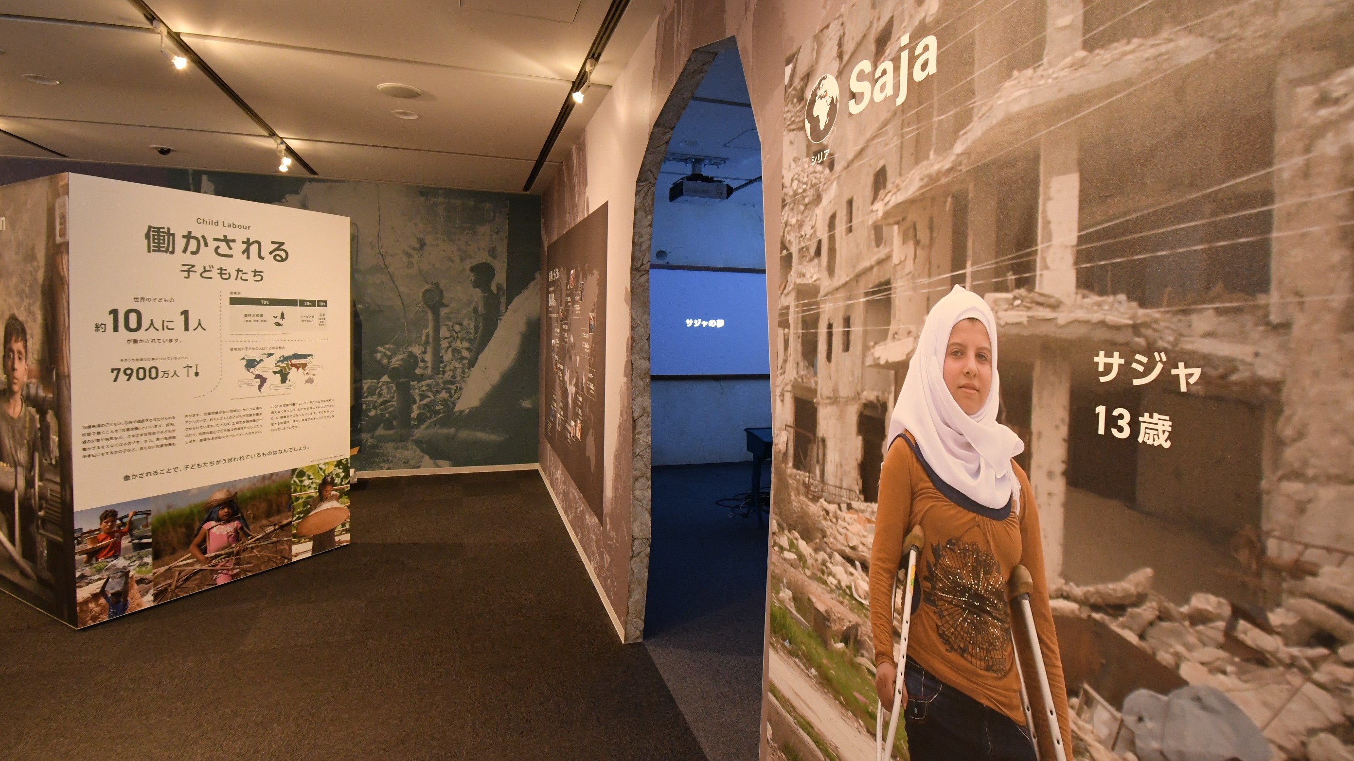 「世界の子どもたちと出会う」をコンセプトに2022年10月リニューアルオープンしたユニセフハウス(東京都港区)でも、アイシャさんに出会えます。右の写真をクリックすると、実写版のアイシャさんの物語(動画)をご覧いただけます。