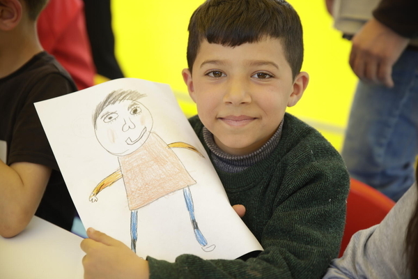 ガジアンテップにあるユニセフの子どもにやさしい空間で、心理社会的支援を受ける男の子。(トルコ、2023年2月27日撮影)