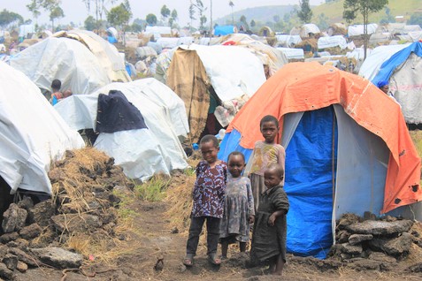 ゴマの農村部にある避難民キャンプで暮らす子どもたち。(コンゴ民主共和国、2023年2月14日撮影)