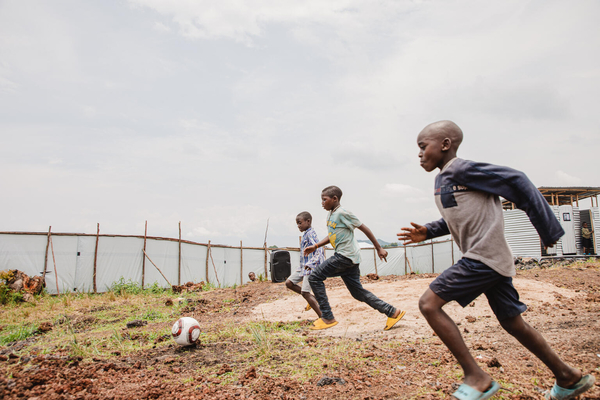 国内避難民キャンプ内でユニセフが設置している「子どもにやさしい空間」で遊ぶ子どもたち。この空間では、学習や運動、レクリエーションなど、平和構築につながるプログラムが行われている。(コンゴ民主共和国、2023年3月5日撮影)