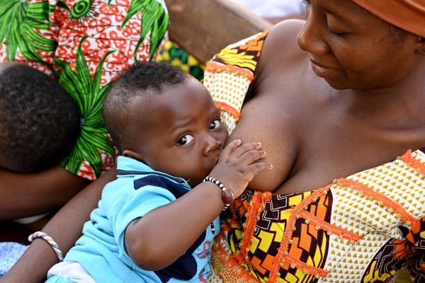 北部コロゴにある保健センターで、赤ちゃんに母乳を与える母親。(コートジボワール、2023年3月9日撮影)