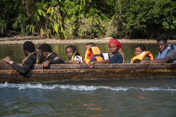 ブラジルから米国を目指すためダリエン地峡を横断し、Lajas Blancasにある移民受け入れセンターに到着した家族。家族は、数年前にハイチからブラジルに移住したが、厳しい経済状況と言葉の壁により国を離れざるを得なくなった。(パナマ、2023年5月撮影)