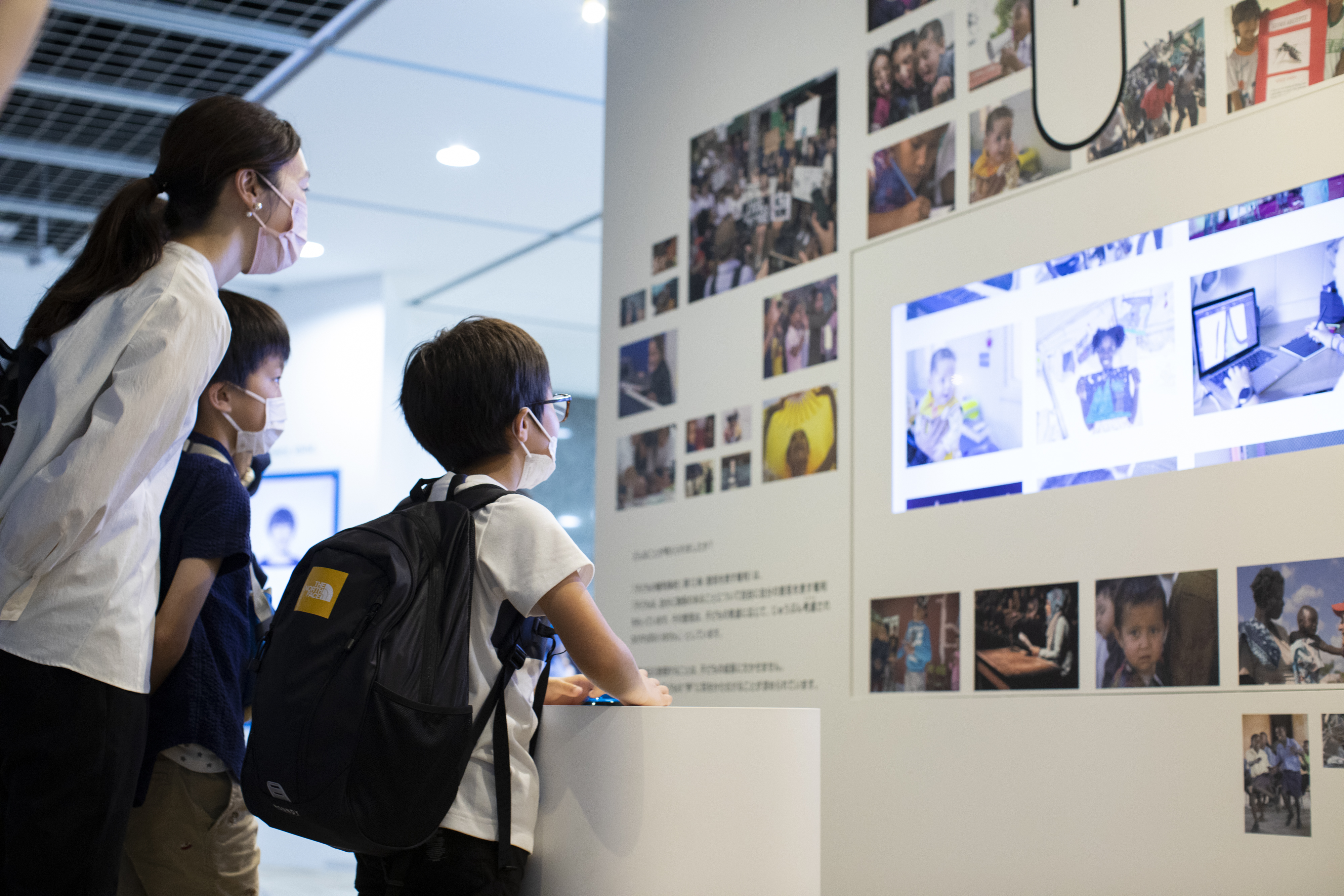 ユニセフハウスでは、多様な状況に置かれている世界の子どもを展示で取り上げています。これら子どもたちとの「出会い」を通じて、子どもの権利やSDGsについて親子で学べる体験型展示施設です。より良い世界のためにこれからどんな未来をつくっていったらよいか、来館者の皆さまに感じ、考えていただける体験を提供しています。無料のガイドツアーや音声ガイドもあります。ぜひご来館ください。