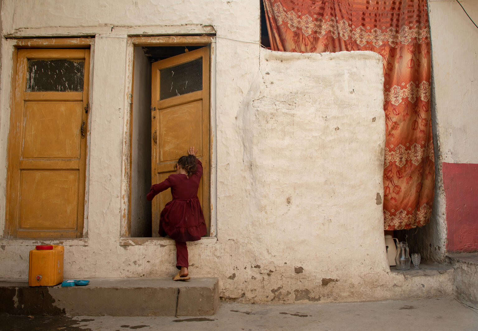 自宅にできたトイレに向かうアスラちゃん(アフガニスタン、2023年6月19日撮影)