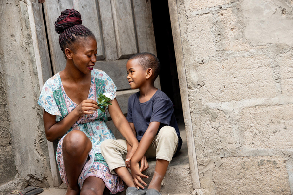 数年前、妊娠中にHIVに感染していることを知り、抗レトロウイルス薬の投与を受けた母親。息子のウィルターくんが出生時に受けたHIV検査結果は陰性だった。(モザンビーク、2023年11月10日撮影)