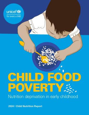 報告書「子どもの食の貧困:乳幼児期の栄養の欠乏 (Child Food Poverty: Nutrition Deprivation in Early Childhood)」は、約100カ国のさまざまな所得階層を対象とし、世界中の乳幼児の間で起きている食の欠乏の影響と原因を初めて分析したものです。本報告書は何百万人もの5歳未満児が、乳幼児期およびその後の健やかな発育を持続させるために必要な、栄養価が高く多様な食品群が含まれる食事を摂取できていない、と警鐘を鳴らしています。