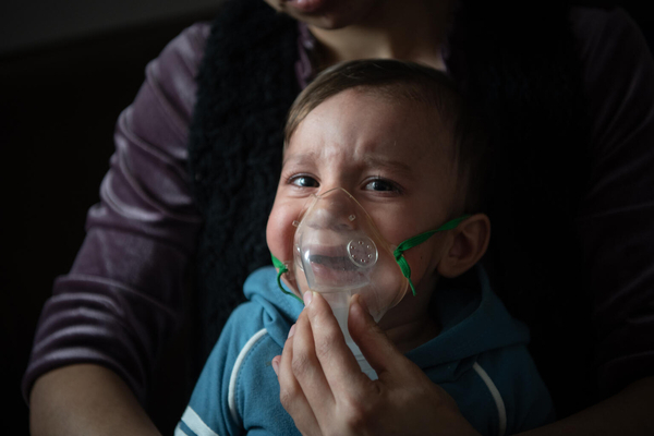 大気汚染の原因となっている発電所近くに暮らす1歳のケナンちゃん。大気汚染による深刻な影響を受けている自治体では、看護師が各家庭を訪問している。(コソボ、2024年3月撮影)