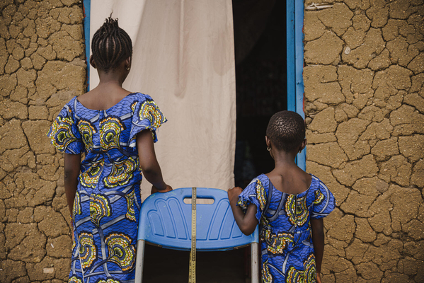 避難先で家計を支えるため、ドーナツを売っていたグレースさん(姉、左)は複数の男性から性的暴行を受けた。生きる気力を失っていたが、ユニセフの職業訓練プログラムを受け、生きる希望を取り戻すことができたと話す。(コンゴ民主共和国、2024年4月撮影)