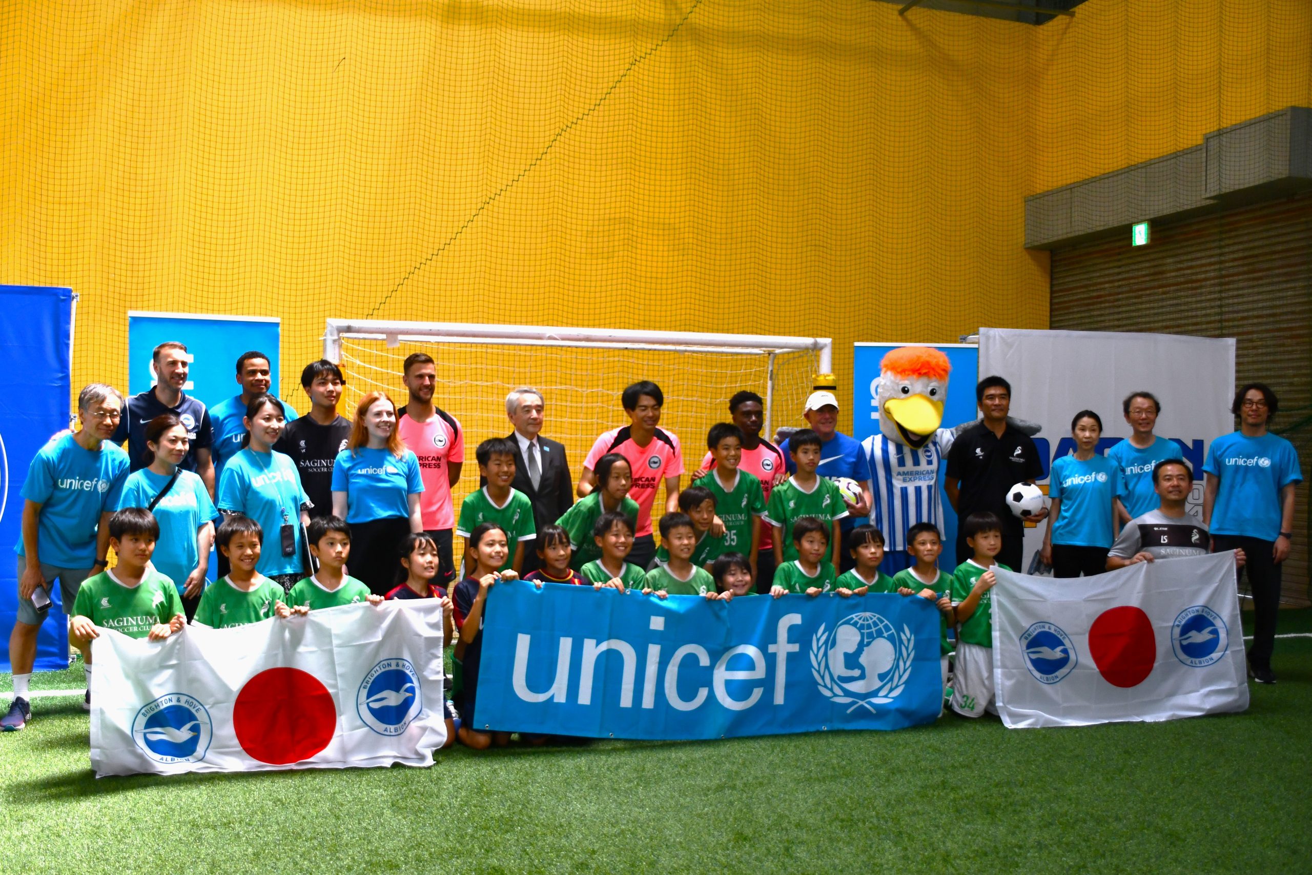 英国ユニセフ協会(ユニセフ英国委員会)とサッカー日本代表の三笘薫選手が所属するプレミアリーグ1部ブライトン&ホーヴ・アルビオン(以下ブライトン)とが、3年間のパートナーシップを7月18日に締結。7月末にジャパンツアーで来日したブライトンは、パートナーシップ締結を記念して、三笘選手の出身チームである神奈川県の少年サッカークラブ「さぎぬまSC」の子どもたちも参加したイベントを開催しました。