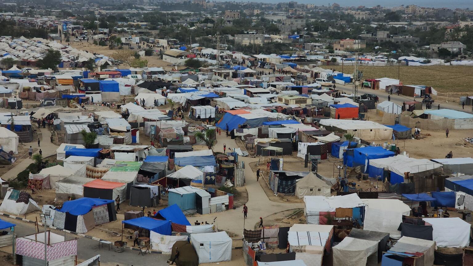 避難してきた人々が暮らすテントが立ち並ぶマワシの様子(ガザ地区、2024年5月撮影)