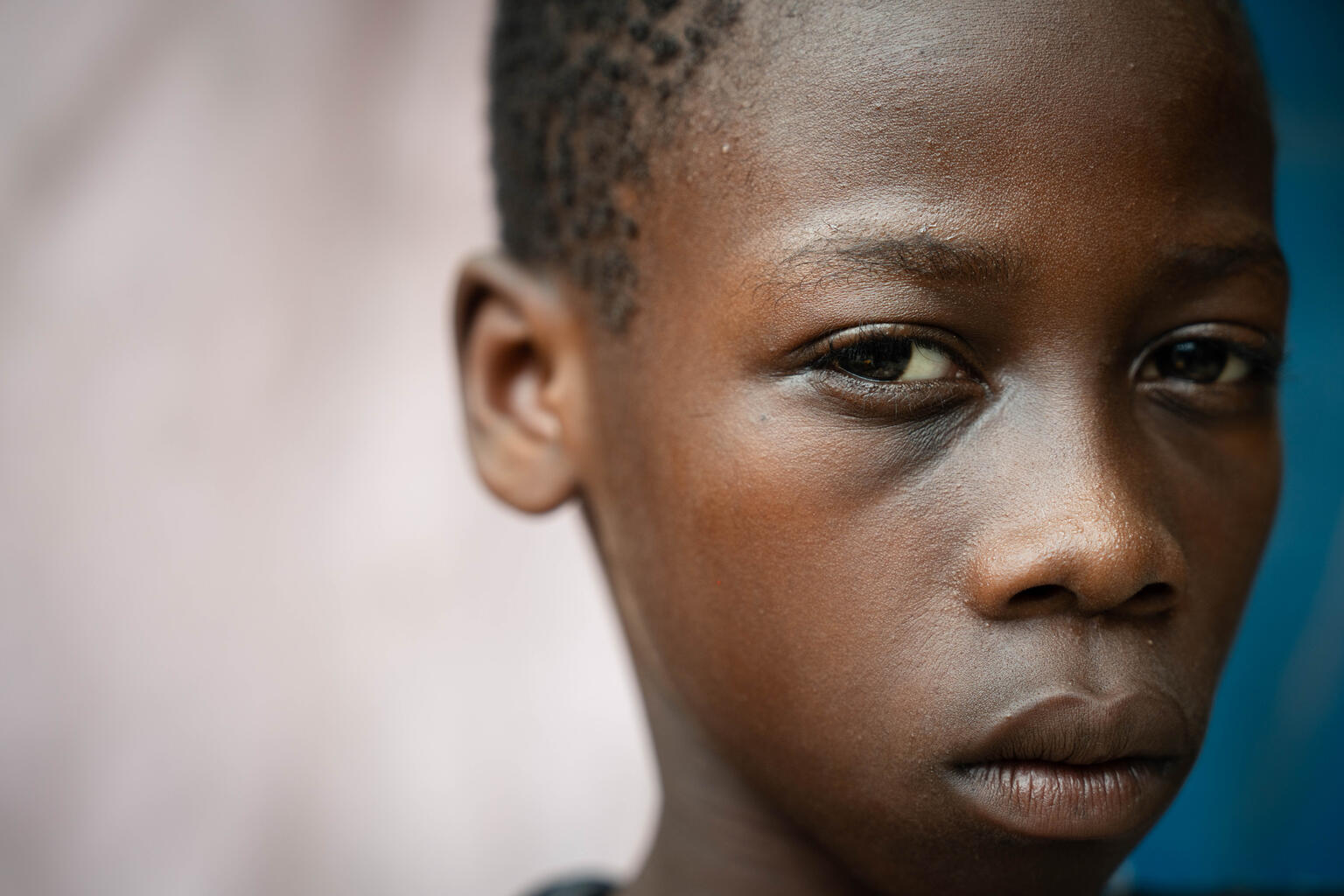 ポルトープランス市の南の地域で勃発した暴力により、故郷を追われた10歳の男の子。 一番恋しいのは学校に通うことだと話す(ハイチ、2024年6月19日撮影)