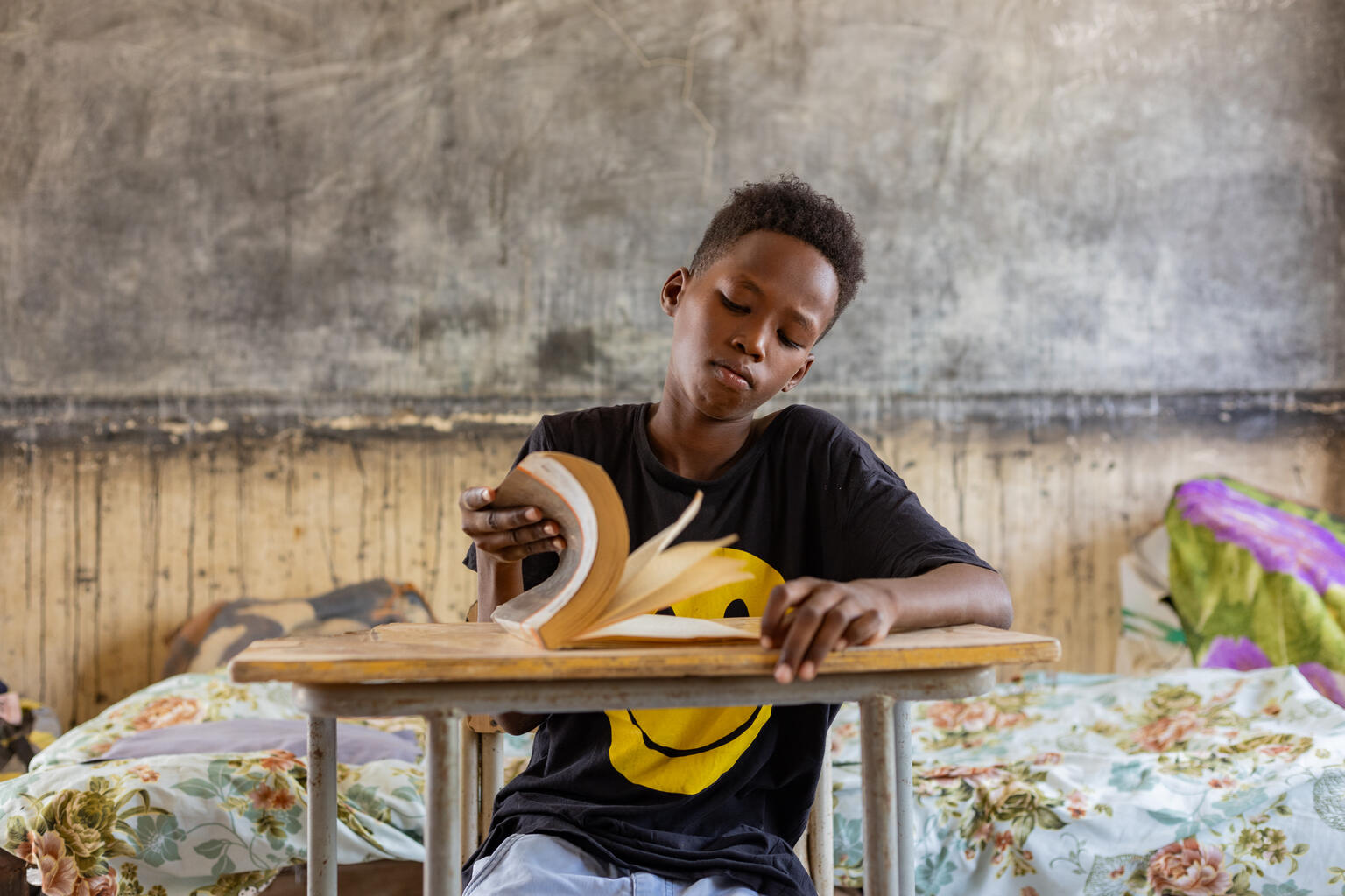 紛争により首都ハルツームから逃げ、ポートスーダンの避難所で暮らしている12歳のアブデルガデルさん(スーダン、2024年8月15日撮影)