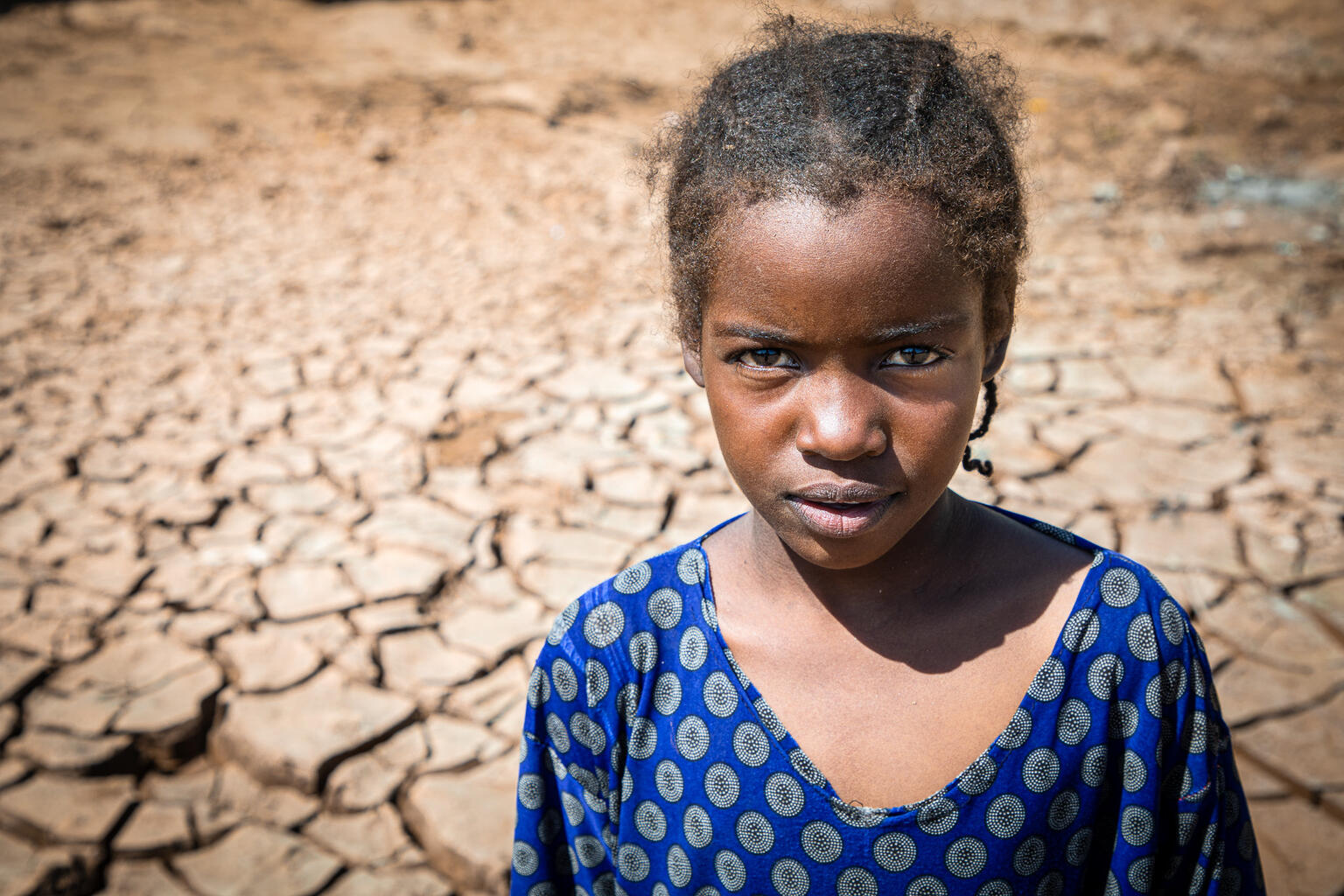 住んでいる地域が大洪水に見舞われ、学校が閉鎖されてしまったため、教師になるという将来の夢の実現が危ぶまれるのではないかと心配している9歳のビントゥーさん(エチオピア、2023年12月6日撮影)
