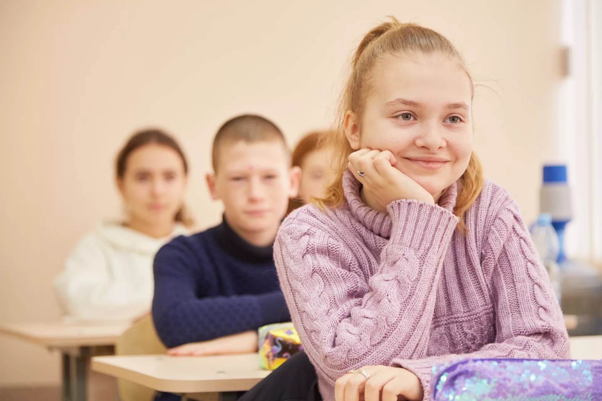 ユニセフによる暖房設備と発電機の支援により、寒い季節も教室で学ぶことができるようになった、ノヴホロドカの学校の子どもたち(ウクライナ、2024年3月撮影)