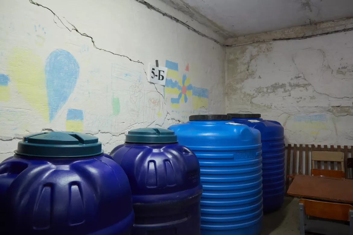 ユニセフが支援した飲料水用タンク(ウクライナ、2024年3月撮影)